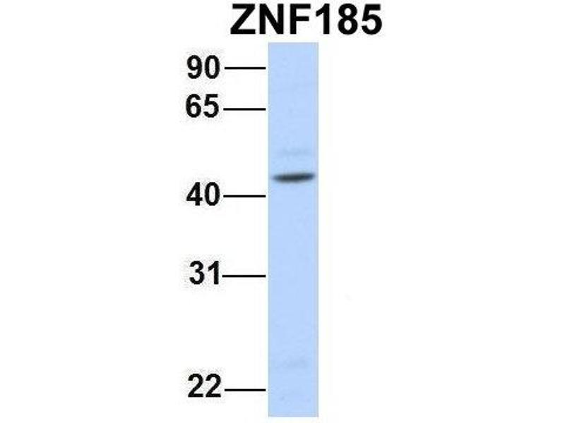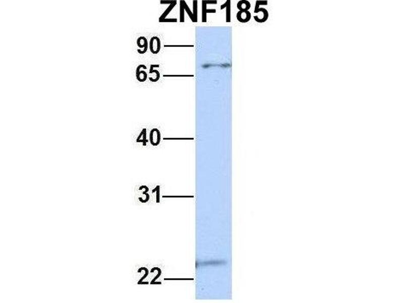 - This is a rabbit polyclonal antibody against ZNF185. It was validated on Western Blot using a cell lysate as a positive control.