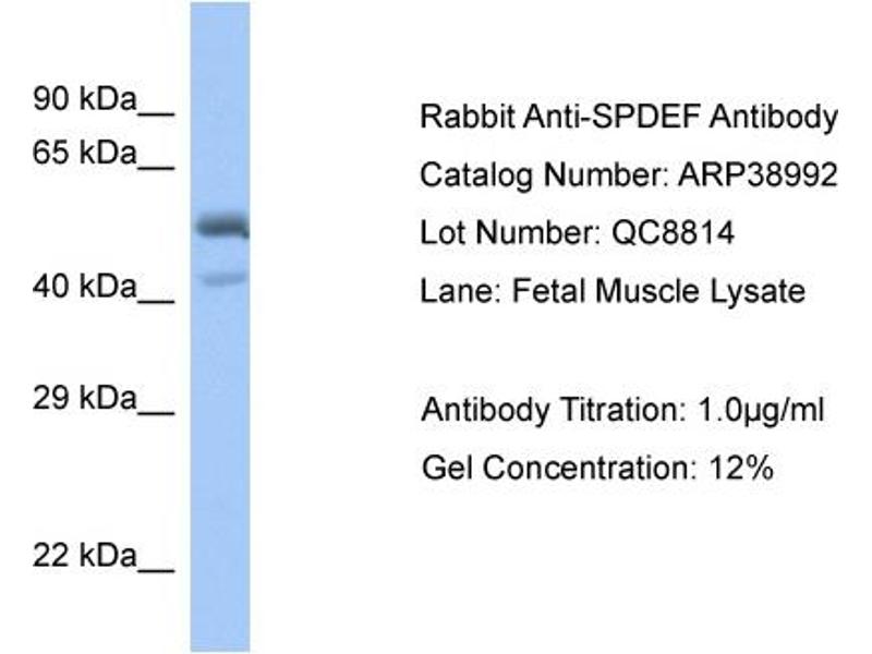 - This is a rabbit polyclonal antibody against SPDEF. It was validated on Western Blot.