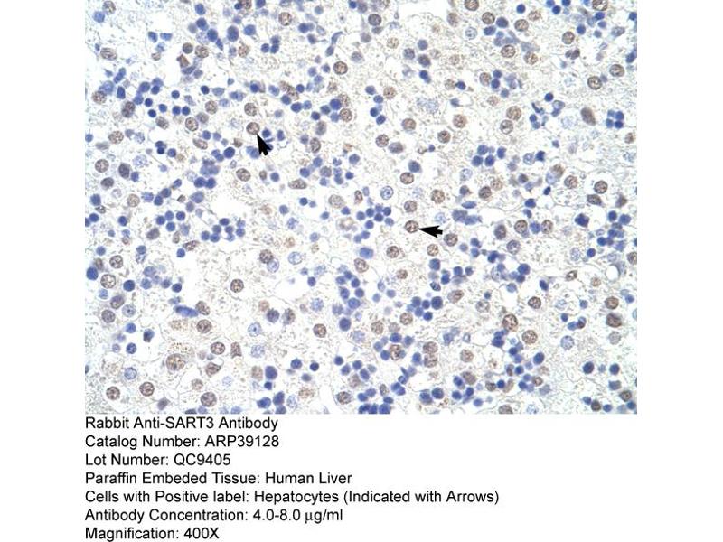 - This is a rabbit polyclonal antibody against SART3. It was validated on Western Blot and immunohistochemistry.