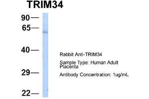 - This is a rabbit polyclonal antibody against TRIM34. It was validated on Western Blot using a cell lysate as a positive control.