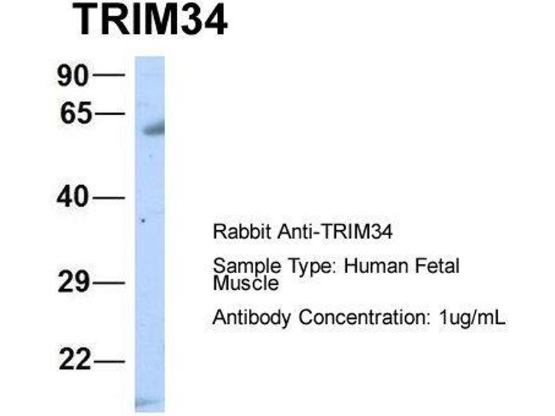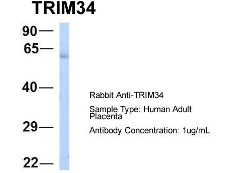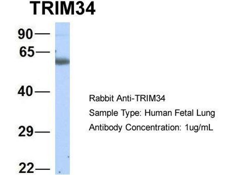 - This is a rabbit polyclonal antibody against TRIM34. It was validated on Western Blot using a cell lysate as a positive control.