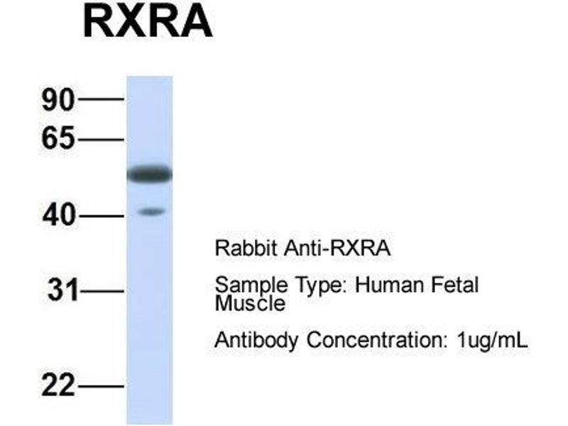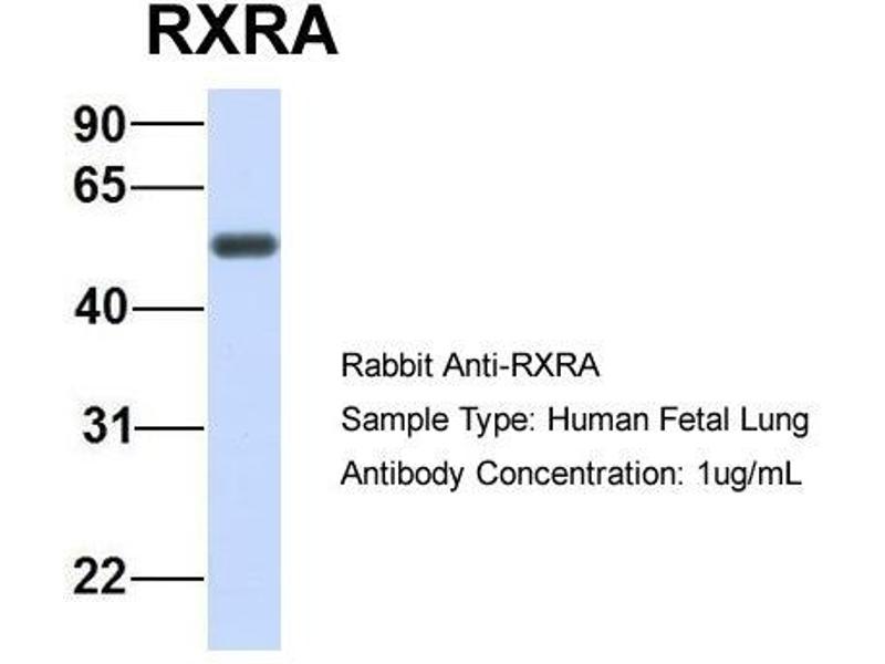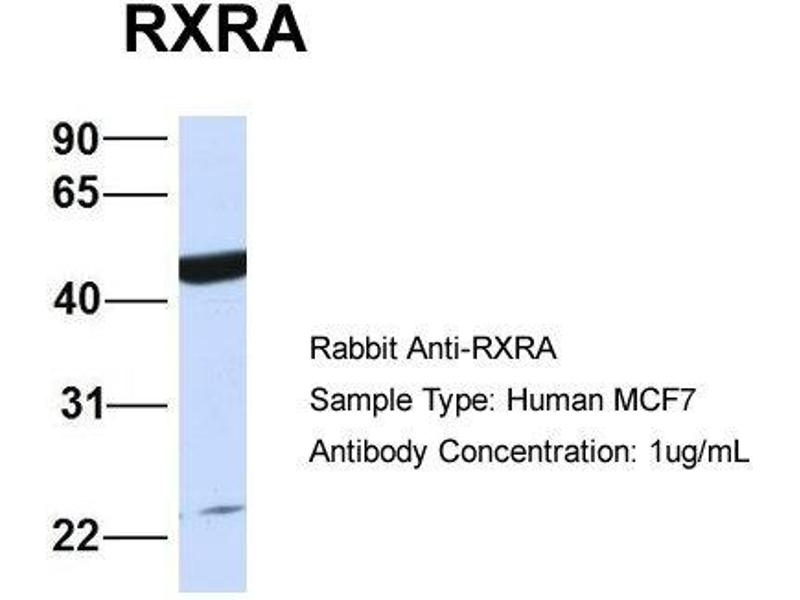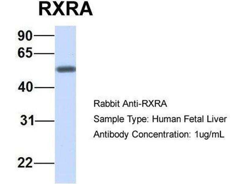 - This is a rabbit polyclonal antibody against RXRA. It was validated on Western Blot using a cell lysate as a positive control.