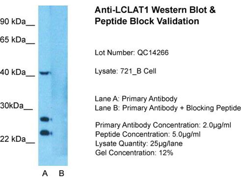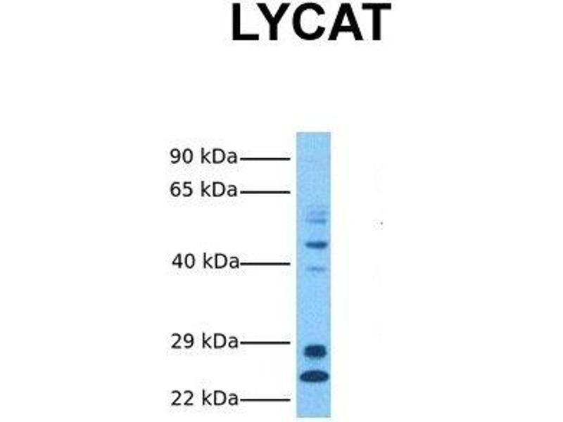 - This is a rabbit polyclonal antibody against LYCAT. It was validated on Western Blot using a cell lysate as a positive control.