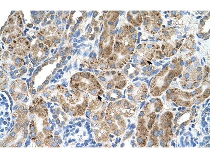 This is a rabbit polyclonal antibody against LOC203547. It was validated on Western Blot and immunohistochemistry.