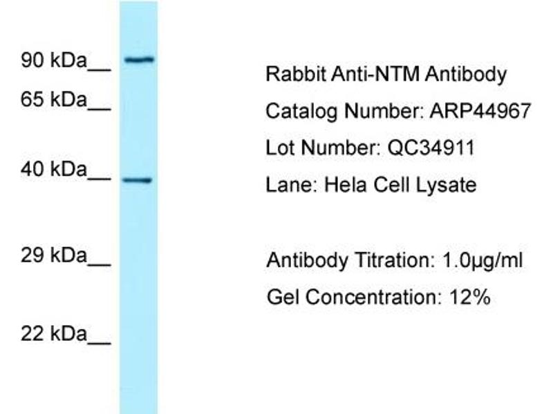 - This is a rabbit polyclonal antibody against NTM. It was validated on Western Blot.