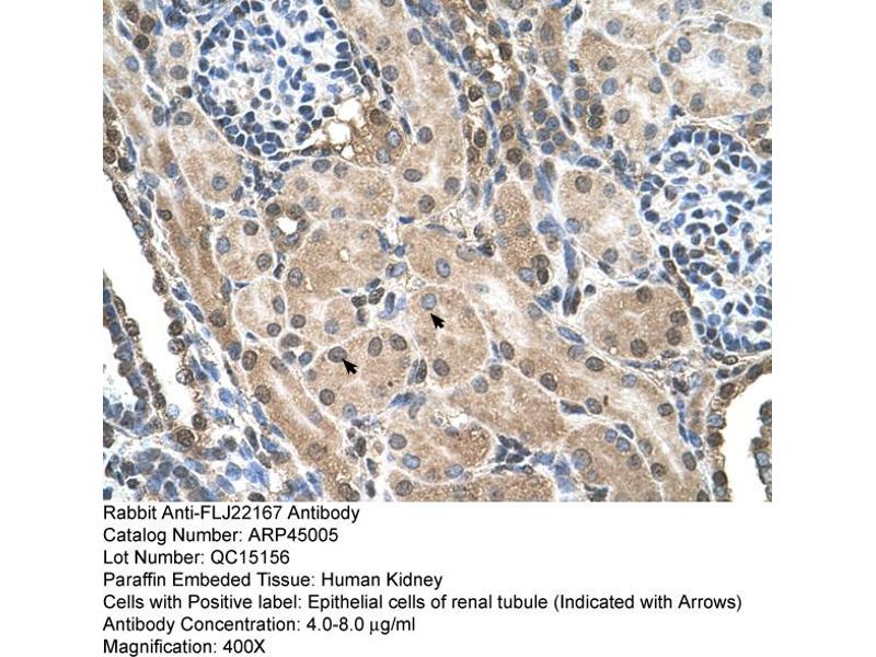 - This is a rabbit polyclonal antibody against FLJ22167. It was validated on Western Blot and immunohistochemistry.
