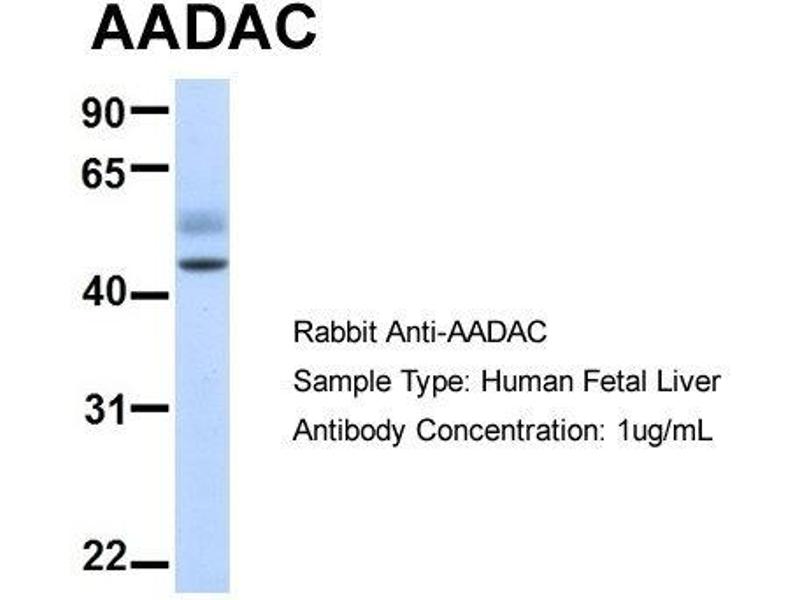 - This is a rabbit polyclonal antibody against AADAC. It was validated on Western Blot using a cell lysate as a positive control.