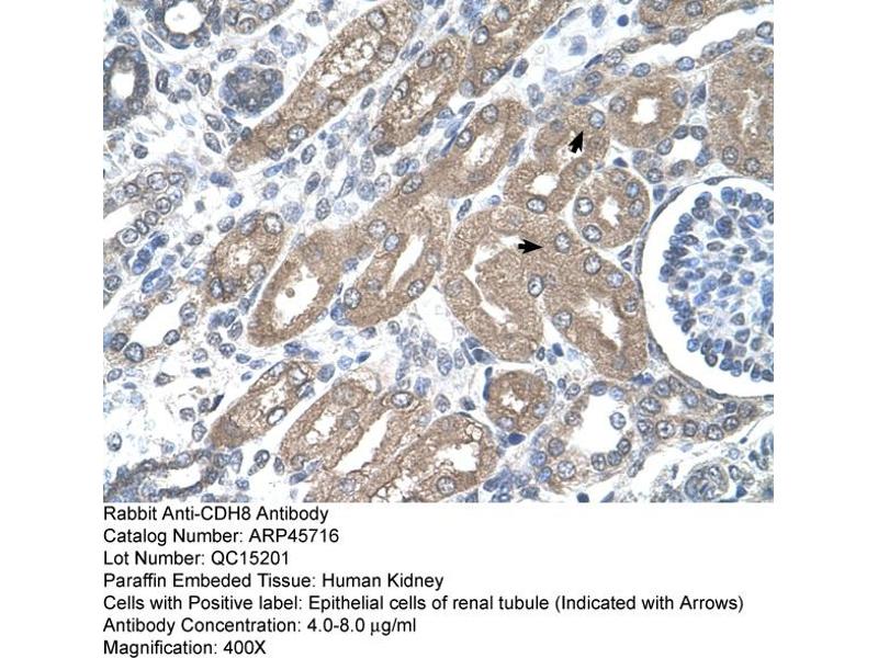 - This is a rabbit polyclonal antibody against CDH8. It was validated on Western Blot using a cell lysate as a positive control.