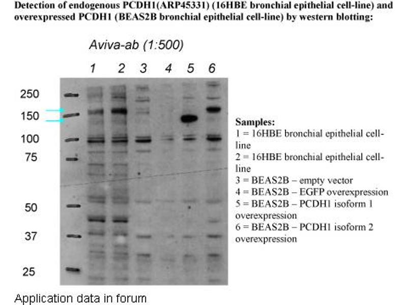 - This is a rabbit polyclonal antibody against PCDH1. It was validated on Western Blot using a cell lysate as a positive control.