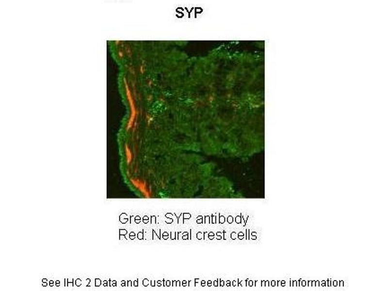 - The immunogen is a synthetic peptide directed towards the N terminal region of human SYP