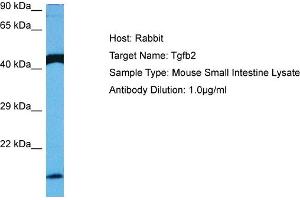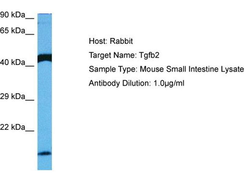 - This is a rabbit polyclonal antibody against TGFB2. It was validated on Western Blot using a cell lysate as a positive control.
