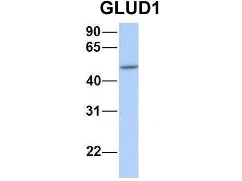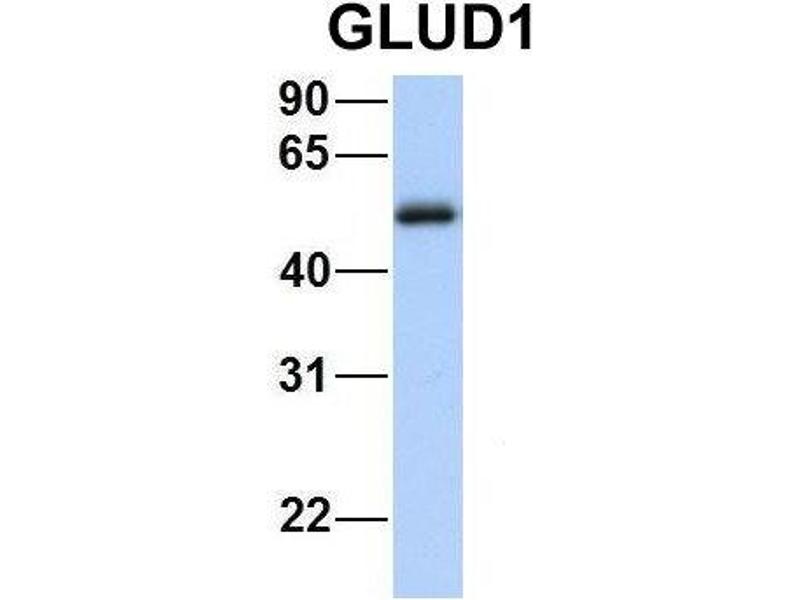 - This is a rabbit polyclonal antibody against GLUD1. It was validated on Western Blot using a cell lysate as a positive control.