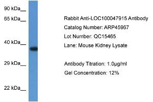 - This is a rabbit polyclonal antibody against LOC100047915. It was validated on Western Blot.
