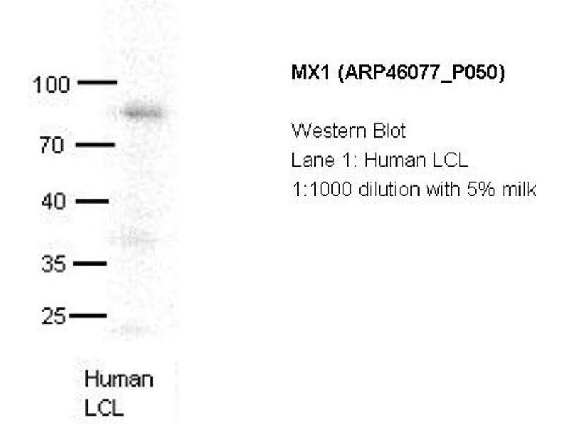 - This is a rabbit polyclonal antibody against MX1. It was validated on Western Blot using a cell lysate as a positive control.