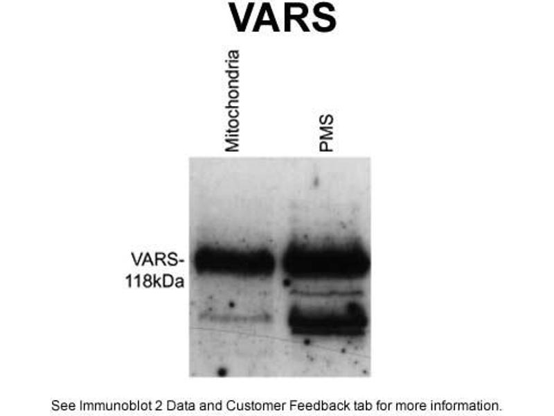 - The immunogen is a synthetic peptide directed towards the middle region of human VARS