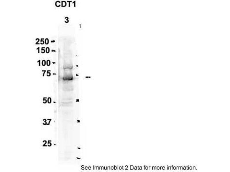 - This is a rabbit polyclonal antibody against CDT1. It was validated on Western Blot using a cell lysate as a positive control.