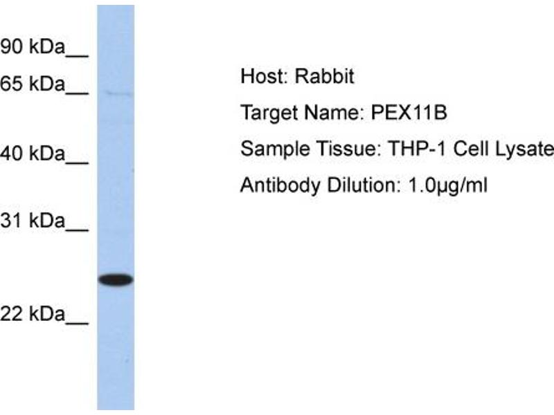 This is a rabbit polyclonal antibody against PEX11B. It was validated on Western Blot.