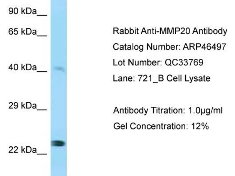 - This is a rabbit polyclonal antibody against MMP20. It was validated on Western Blot.