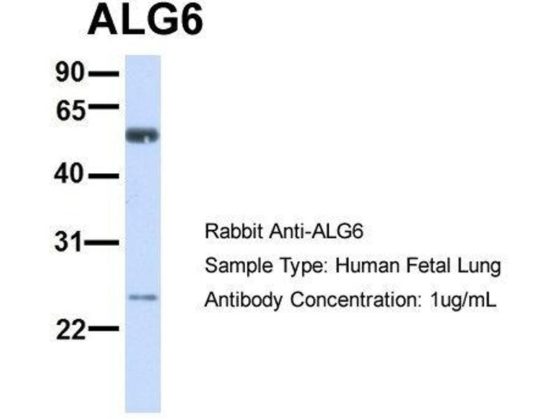 - This is a rabbit polyclonal antibody against ALG6. It was validated on Western Blot using a cell lysate as a positive control.