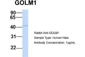- This is a rabbit polyclonal antibody against GOLM1. It was validated on Western Blot using a cell lysate as a positive control.