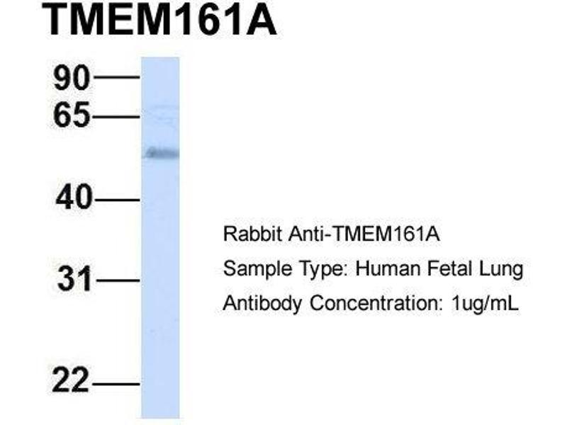 - This is a rabbit polyclonal antibody against TMEM161A. It was validated on Western Blot using a cell lysate as a positive control.