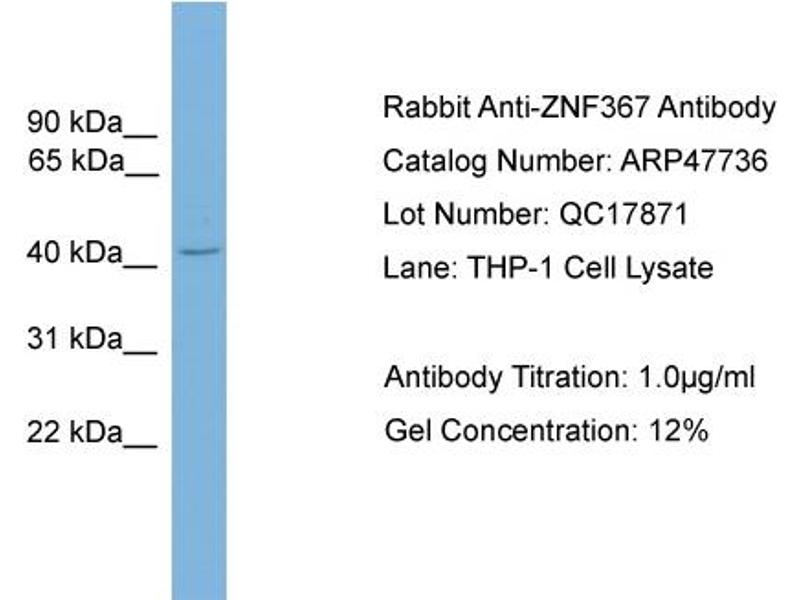 - This is a rabbit polyclonal antibody against ZNF367. It was validated on Western Blot.