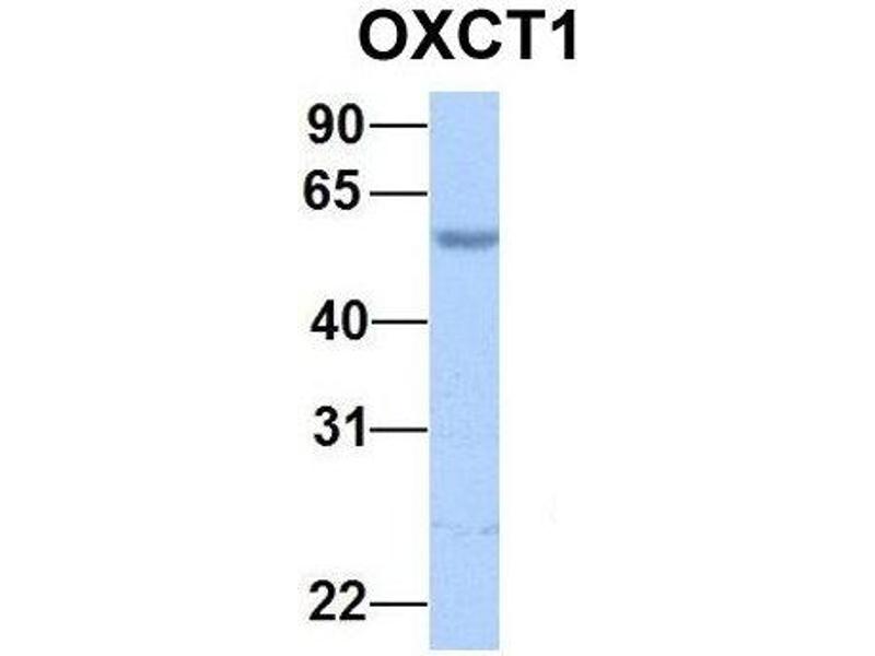 This is a rabbit polyclonal antibody against OXCT1. It was validated on Western Blot using a cell lysate as a positive control.