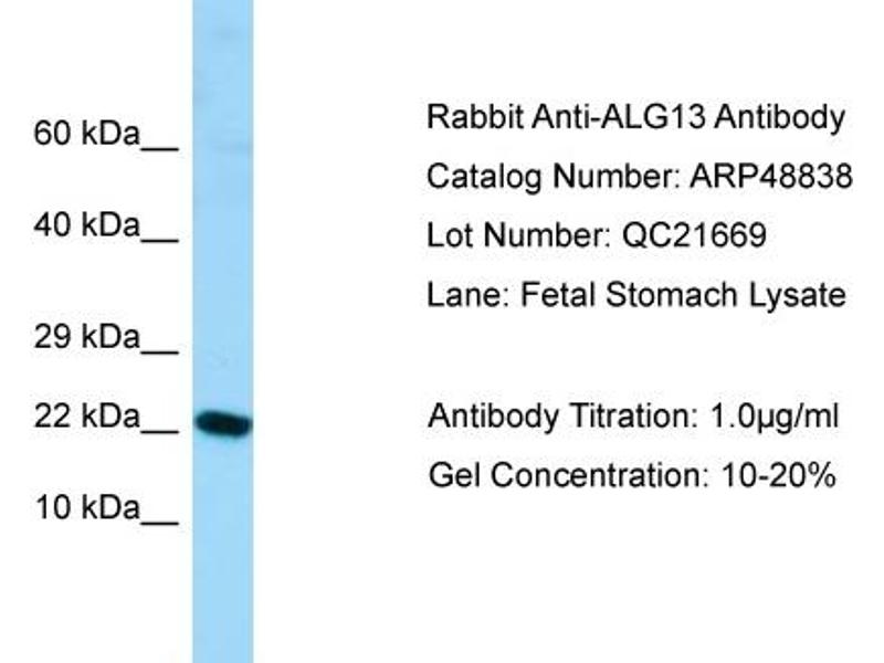 - This is a rabbit polyclonal antibody against ALG13. It was validated on Western Blot.
