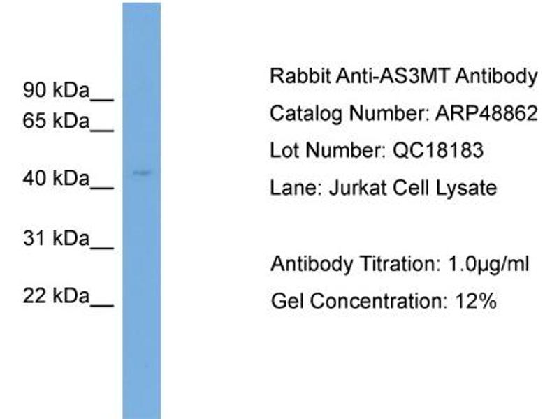 - The immunogen is a synthetic peptide directed towards the middle region of human AS3MT