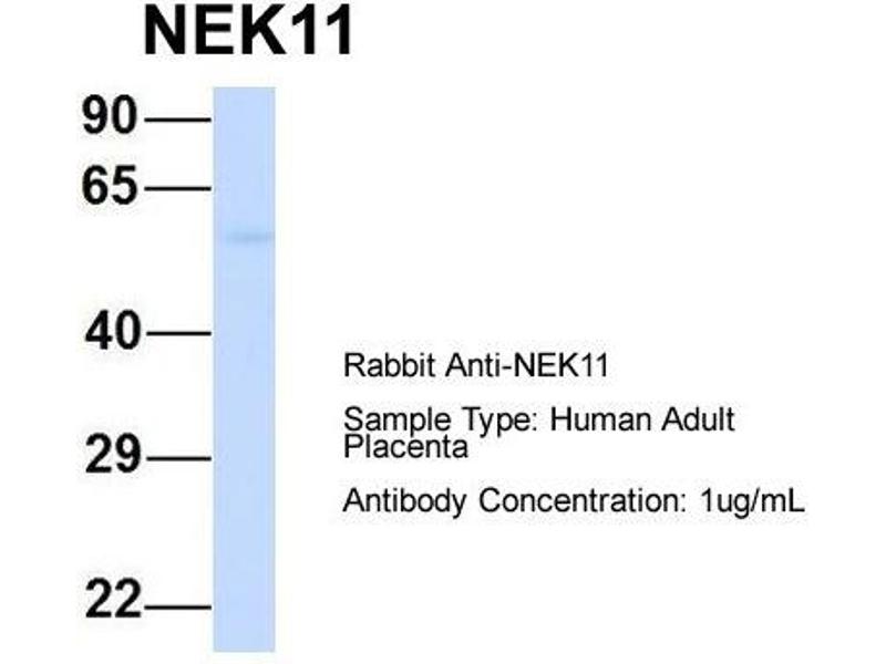 - This is a rabbit polyclonal antibody against NEK11. It was validated on Western Blot using a cell lysate as a positive control.