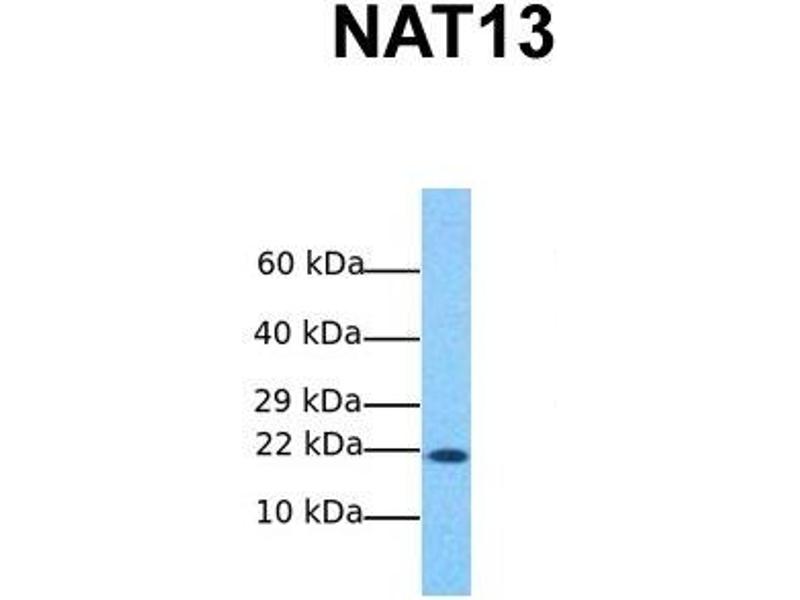 - This is a rabbit polyclonal antibody against NAT13. It was validated on Western Blot using a cell lysate as a positive control.
