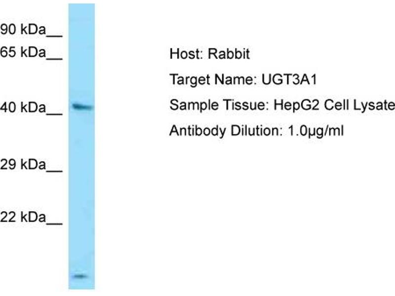 This is a rabbit polyclonal antibody against UGT3A1. It was validated on Western Blot.