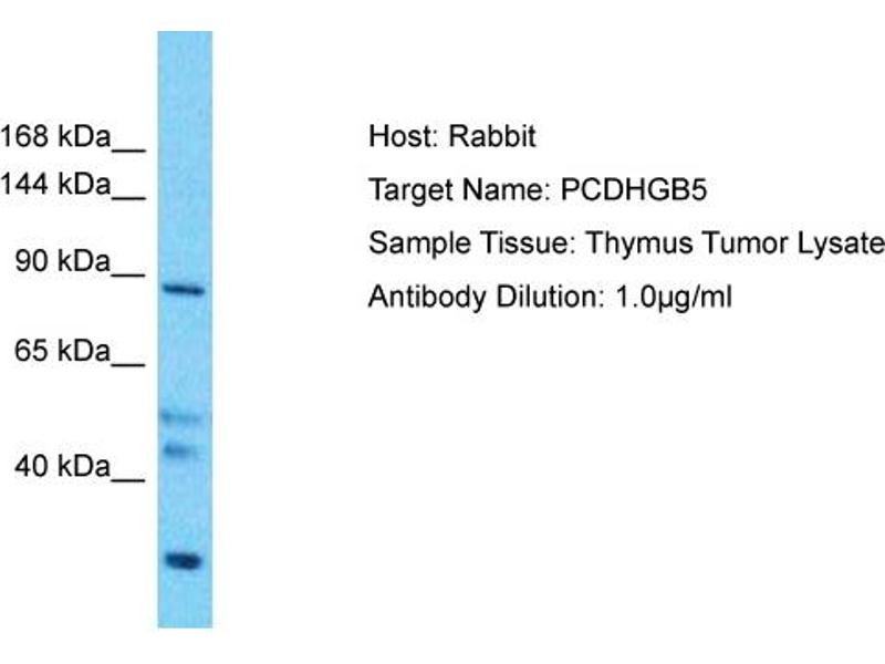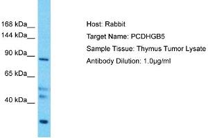 This is a rabbit polyclonal antibody against PCDHGB5. It was validated on Western Blot.