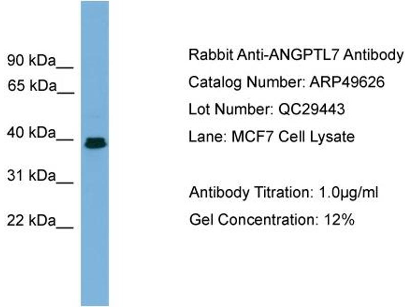 This is a rabbit polyclonal antibody against ANGPTL7. It was validated on Western Blot.