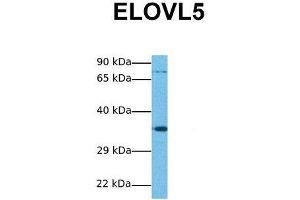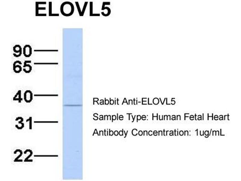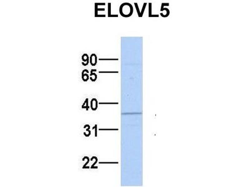 - This is a rabbit polyclonal antibody against ELOVL5. It was validated on Western Blot using a cell lysate as a positive control.