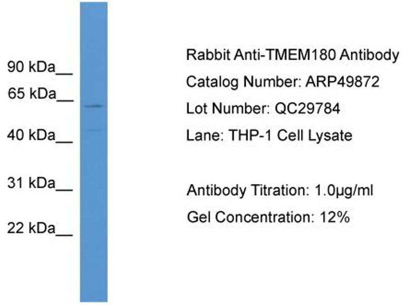 - This is a rabbit polyclonal antibody against TMEM180. It was validated on Western Blot.
