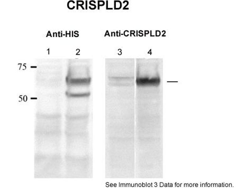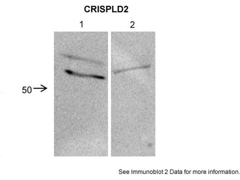 - This is a rabbit polyclonal antibody against CRISPLD2. It was validated on Western Blot using a cell lysate as a positive control.