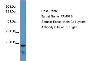 This is a rabbit polyclonal antibody against FAM57B. It was validated on Western Blot.
