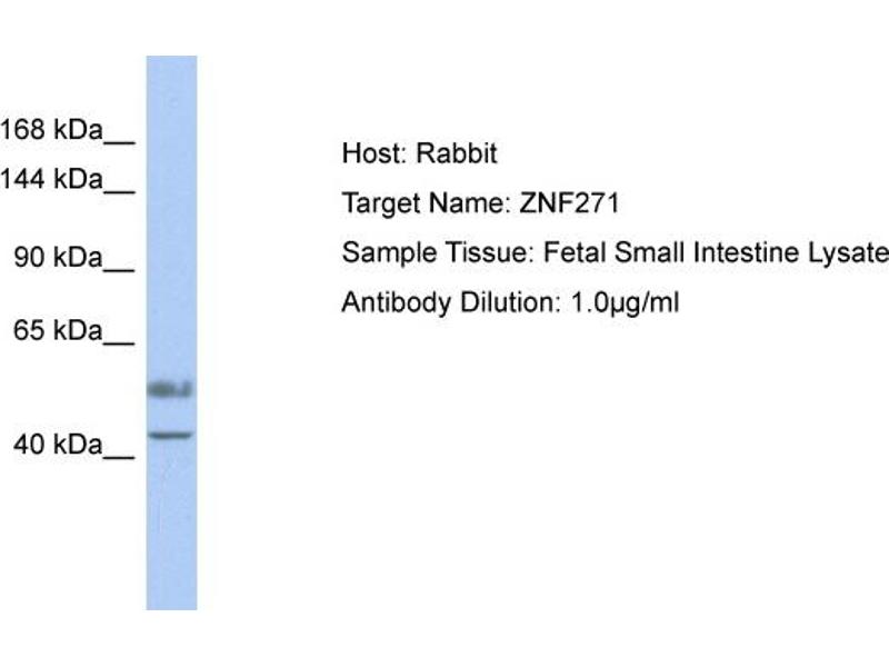 This is a rabbit polyclonal antibody against ZNF271. It was validated on Western Blot.