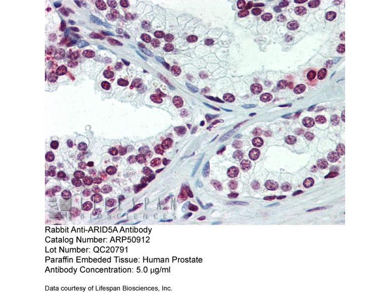 - The immunogen is a synthetic peptide directed towards the C terminal region of human ARID5A