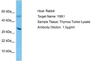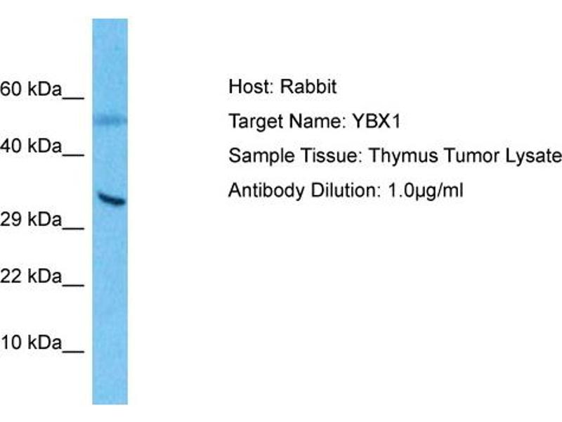 YBX1 binds to splice sites in pre-mRNA and regulates splice site selection. YBX1 binds and stabilizes cytoplasmic mRNA. YBX1 contributes to the regulation of translation by modulating the interaction between the mRNA and eukaryotic initiation factors. YBX1 binds to promoters that contain a Y-box (5'-CTGATTGGCCAA-3'), such as HLA class II genes. YBX1 regulates the transcription of numerous genes. YBX1 promotes separation of DNA strands that contain mismatches or are modified by cisplatin. YBX1 has endonucleolytic activity and can introduce nicks or breaks into double-stranded DNA (in vitro). YBX1 may play a role in DNA repair. YBX1 is the component of the CRD-mediated complex that promotes MYC mRNA stability. Alias Symbols: BP-8, CSDA2, CSDB, DBPB, MDR-NF1, NSEP-1, NSEP1, YB-1, YB1 Protein Interaction Partner: UBC, TP53, AKT1, SPRTN, AURKA, SUMO2, STAU1, IVNS1ABP, SMURF2, EZH2, BMI1, SUZ12, RNF2, HNRNPU, HNRNPAB, HNRNPA2B1, FUS, FKBP3, DYNC1LI2, DYNC1I2, DYNC1H1, DDX1, APBB1, G3BP1, EIF2B2, TUBB, PRPF40A, EIF3K, DIMT1, TUBA4A, RPL23A, PTBP1, PA2G4, NMT1, MAP2, Protein Size: 324