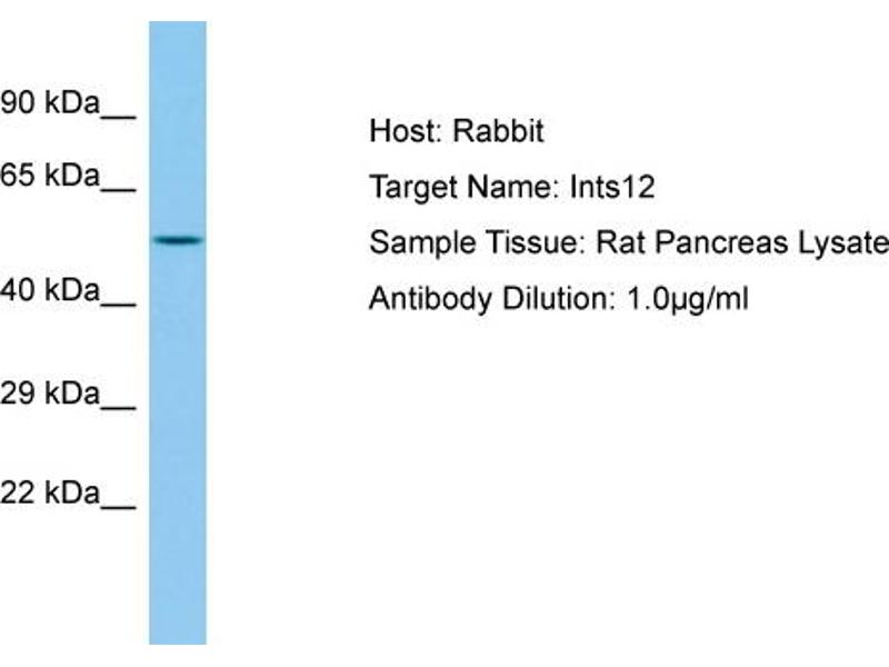 The Rabbit Polyclonal anti-INTS12 antibody has been validated for WB. It is suitable to detect INTS12 in samples from Human, Mouse, Rat, Cow, Dog, Guinea Pig, Horse, Rabbit and Zebrafish (Danio rerio).
