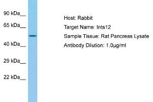 Ints12 is a component of the Integrator complex, a complex involved in the small nuclear RNAs (snRNA) U1 and U2 transcription and in their 3'-box-dependent processing. The Integrator complex is associated with the C-terminal domain (CTD) of RNA polymerase II largest subunit (POLR2A) and is recruited to the U1 and U2 snRNAs genes. Alias Symbols: Phf22 Protein Size: 461