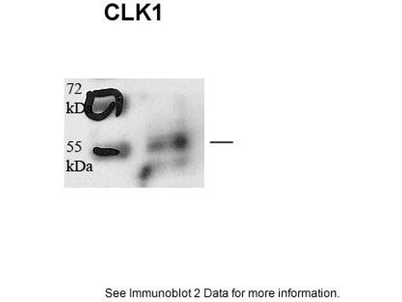 - The immunogen is a synthetic peptide directed towards the N terminal region of human CLK1