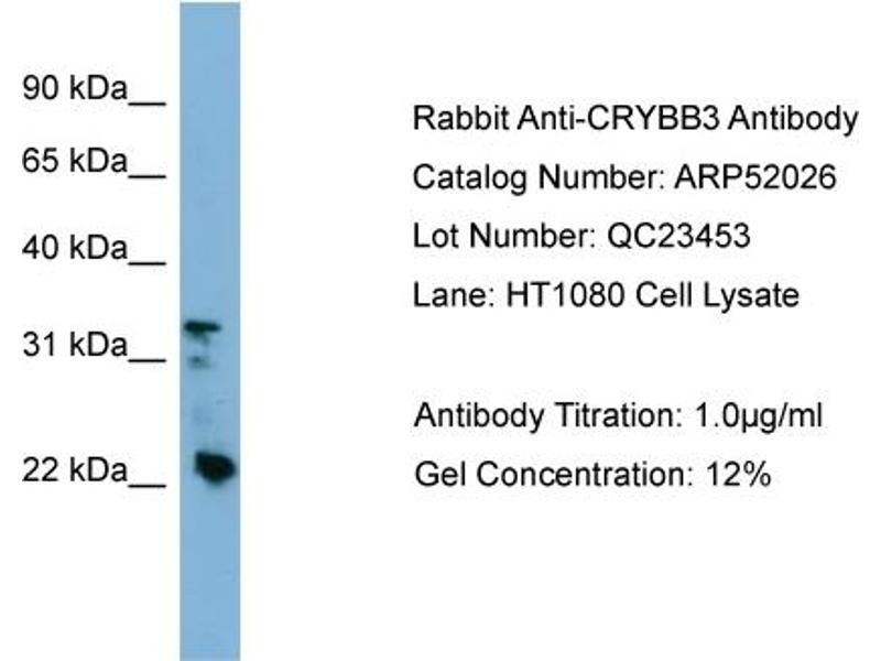 - This is a rabbit polyclonal antibody against CRYBB3. It was validated on Western Blot using a cell lysate as a positive control.