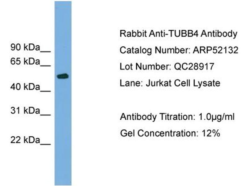 - This is a rabbit polyclonal antibody against TUBB4. It was validated on Western Blot using a cell lysate as a positive control.