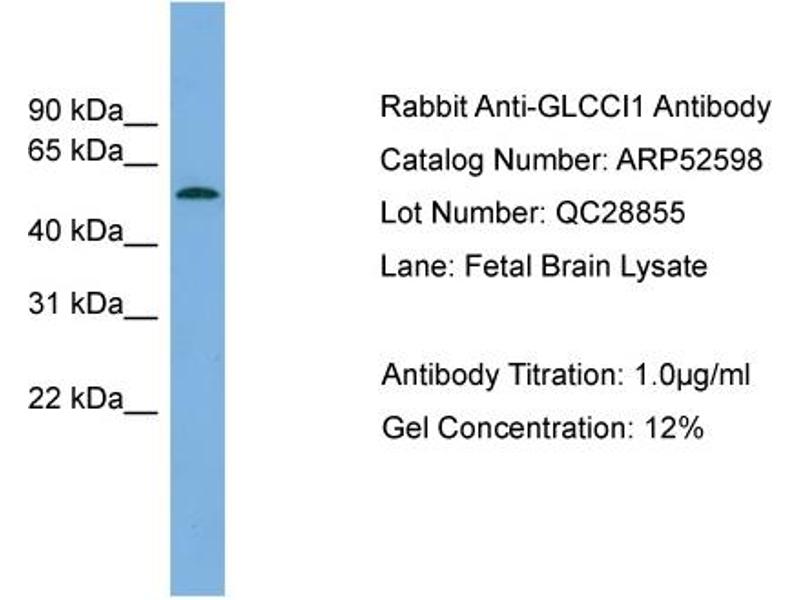 - This is a rabbit polyclonal antibody against GLCCI1. It was validated on Western Blot using a cell lysate as a positive control.