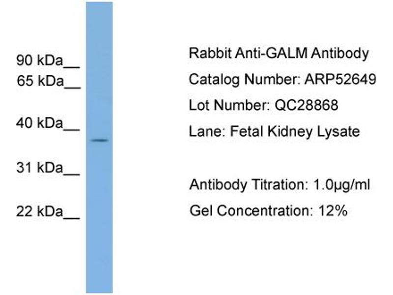 - The immunogen is a synthetic peptide directed towards the middle region of human GALM