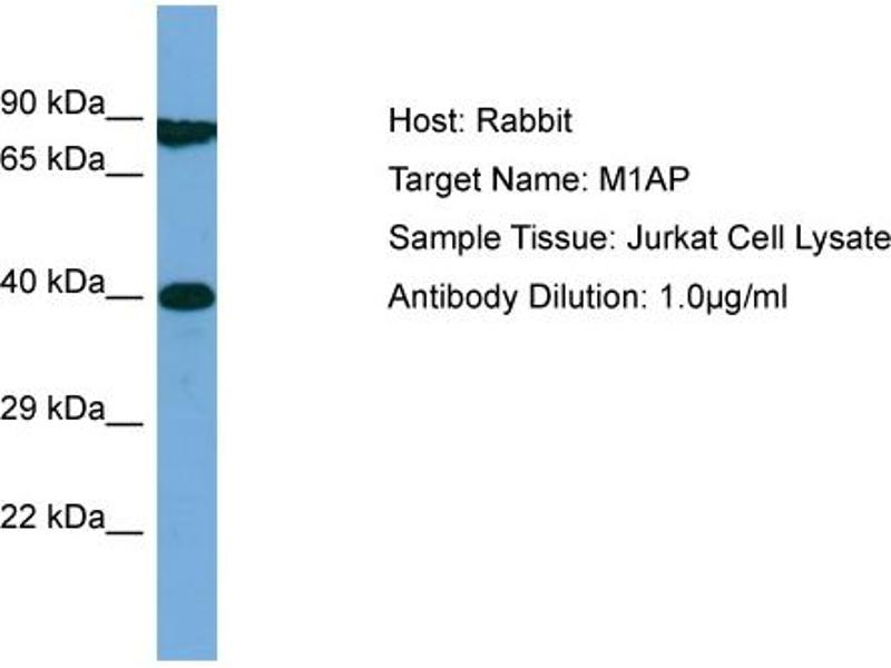 - This is a rabbit polyclonal antibody against M1AP. It was validated on Western Blot.