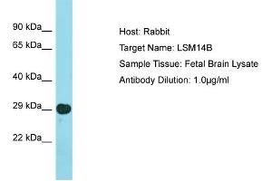 LSM14B may play a role in control of mRNA translation. Protein Interaction Partner: UBC, LGR4, DDX6, HECW2, HSPB3, Protein Size: 239